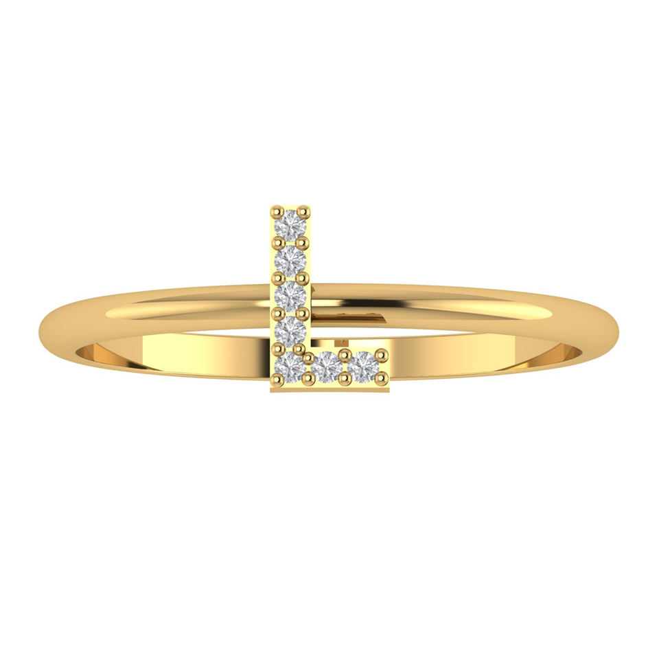 Solid 14k Yellow Gold L Initial Ring Pave Diamond Jewelry Handmade a to Z Minimalist Letters Ring Gold Diamond Jewelry L Ring