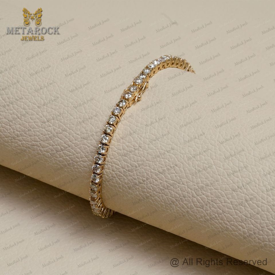 สร้อยข้อมือ tannis สีทอง14K ทำด้วยมือชุดง่ามเครื่องประดับเพชร IJ สีทองเทียบกับความบริสุทธิ์สร้อยข้อมือผู้หญิงเพชรแท้