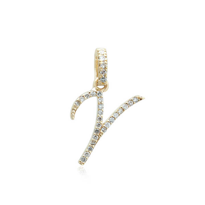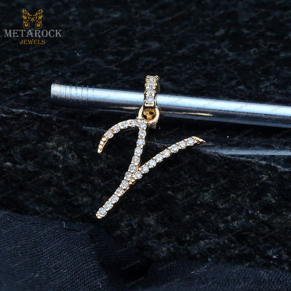 ของแข็ง14พันสีเหลืองทองYเริ่มต้นจี้แฮนด์เมดปูเครื่องประดับเพชรที่มีคุณภาพสูงสุดBig Nตัวอักษรชื่อจี้ทองเพชร