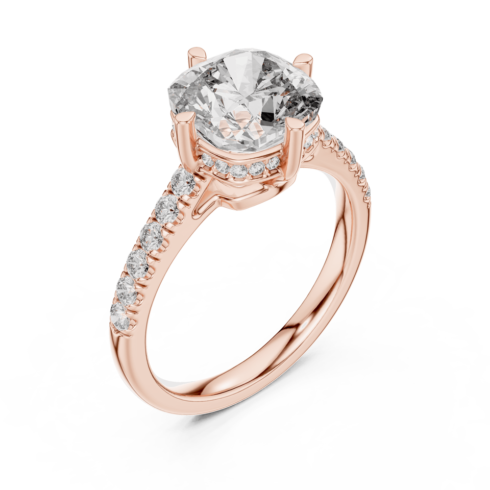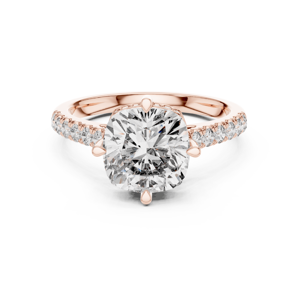 Solid 18K Rose Gold Cushion Diamond Ring Pave Shank Engagement Ring Sparkling Micro Pave Bridal Wedding Band Custom Jewelry