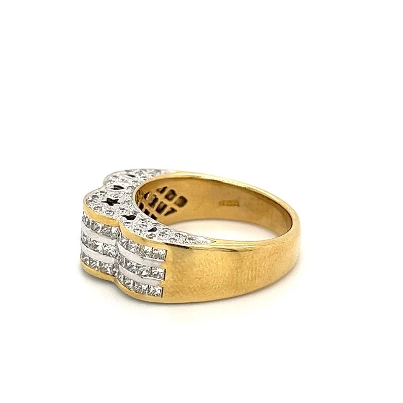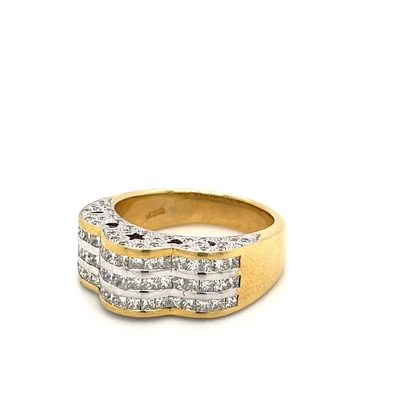 Solid 18K Yellow Gold Plated Natural Princess Cut Diamond Star Cluster Ring IGI Certified for Engagement Women's Fashion Jewelry