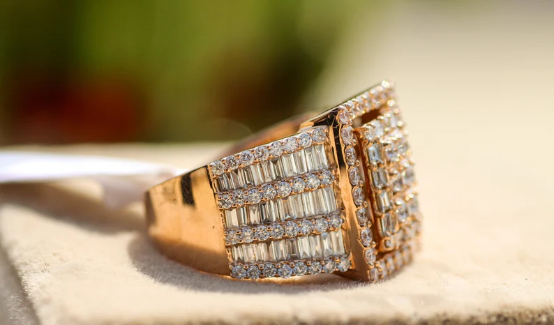 แหวนเพชรฮิปฮอปชุบทอง18K สำหรับผู้ชายเครื่องประดับแฟชั่นอินเทรนด์แหวนผู้ชาย