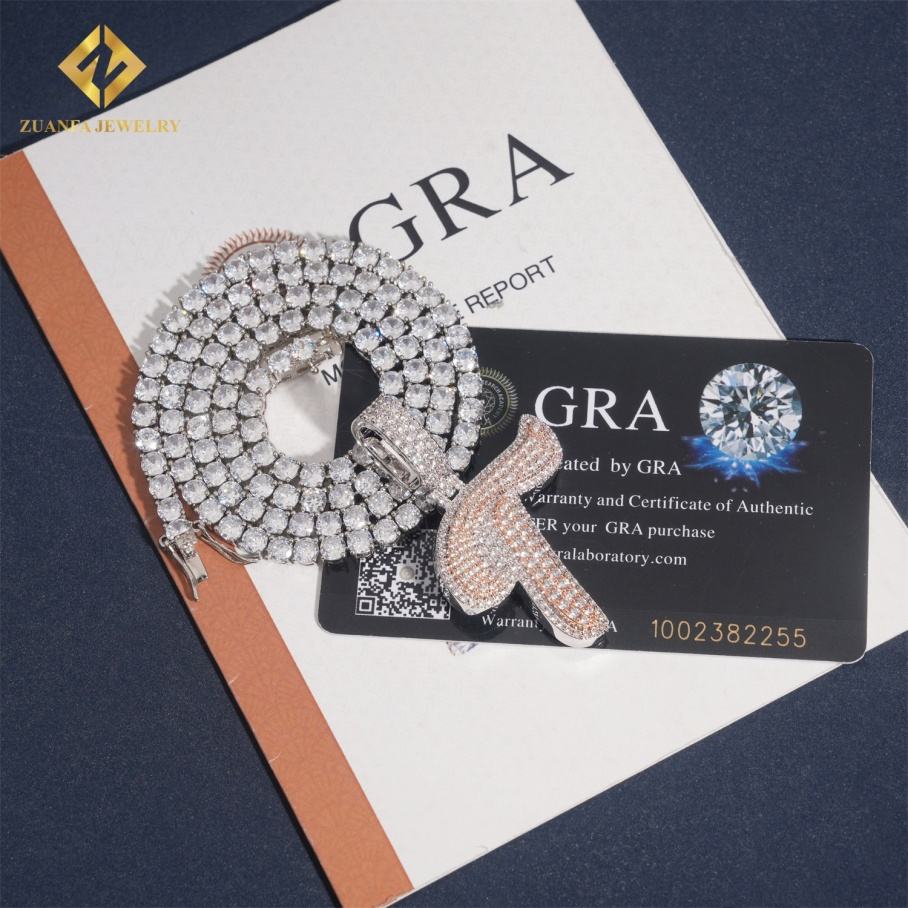 เครื่องประดับฮิปฮอป925แข็งจี้รูปตัวอักษรแบบนำโชค VVS Lab เครื่องทดสอบเพชรแบบผ่าน