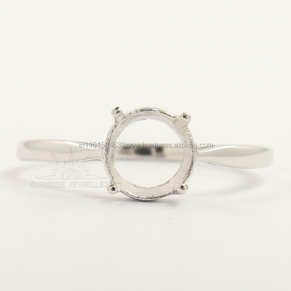 ของแข็ง925เงินบริสุทธิ์กึ่งติดแหวนหมั้นรอบการตั้งค่าใหม่ทุกขนาด