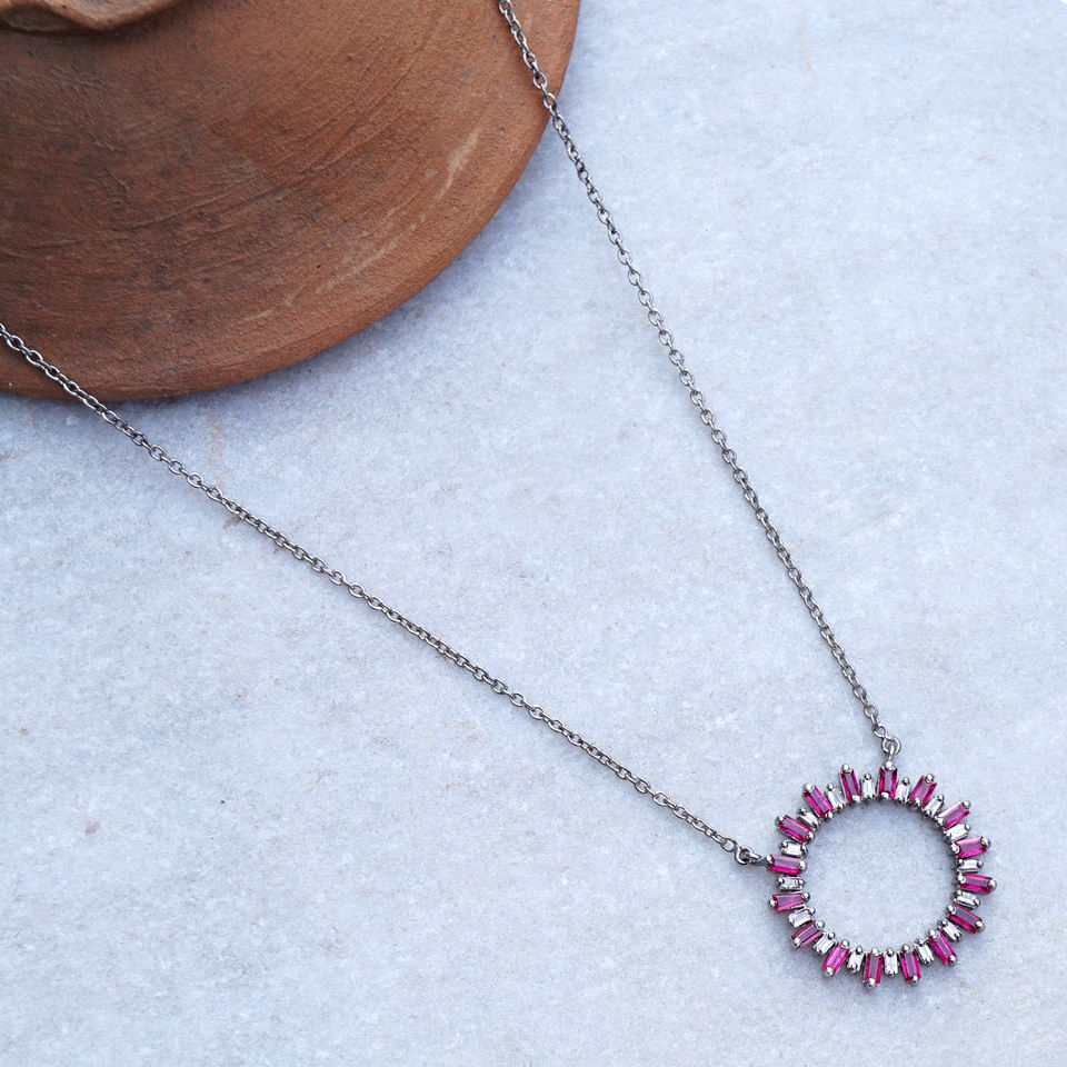 สร้อยคอพร้อมจี้ทรงขนมปังฝรั่งเศส,เครื่องประดับอัญมณีทับทิมออกซิไดซ์แฮนด์เมดสีเงิน925