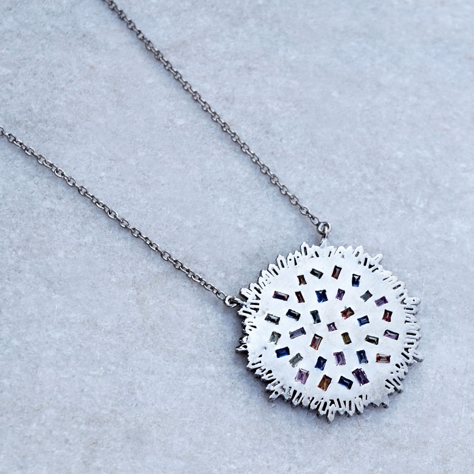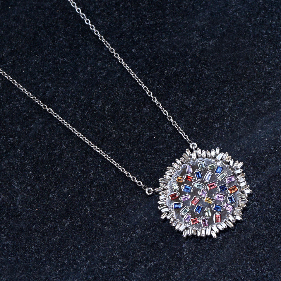 สร้อยคอพร้อมจี้ทรงขนมปังฝรั่งเศสสีเงิน925,แฮนด์เมดเครื่องประดับกลมไพลินออกซิไดซ์สำหรับผู้หญิง