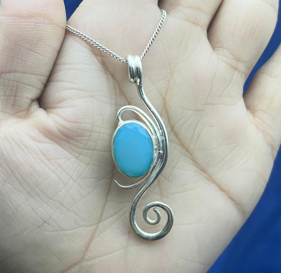 สร้อยคอจี้เงิน925ทึบพร้อมดีไซน์พลอยคาลซิโดนี่หยดน้ำตาสำหรับวันครบรอบจี้เสน่ห์อันหรูหรา