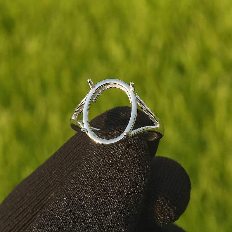 แหวนวงรีทรง925สีเงินสเตอร์ลิงขนาด10x12มม. พร้อมสลักหินแบบง่ามและอุปกรณ์สำหรับผู้หญิงและผู้ชาย