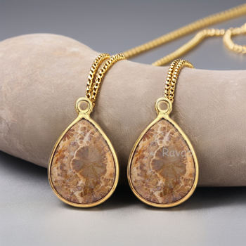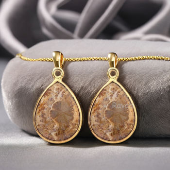 Product Name:Natural Agatized Coral 12x16 MM Silver Gold Plated Bezel Pendant