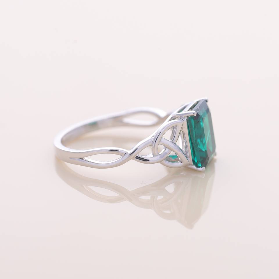 แหวนเงินแท้ 925 ประดับพลอยมรกตสีเขียวทรงเหลี่ยม 2 กะรัต ดีไซน์ลายเซลติกน็อต พร้อมก้านแหวนแบบแยกส่วน