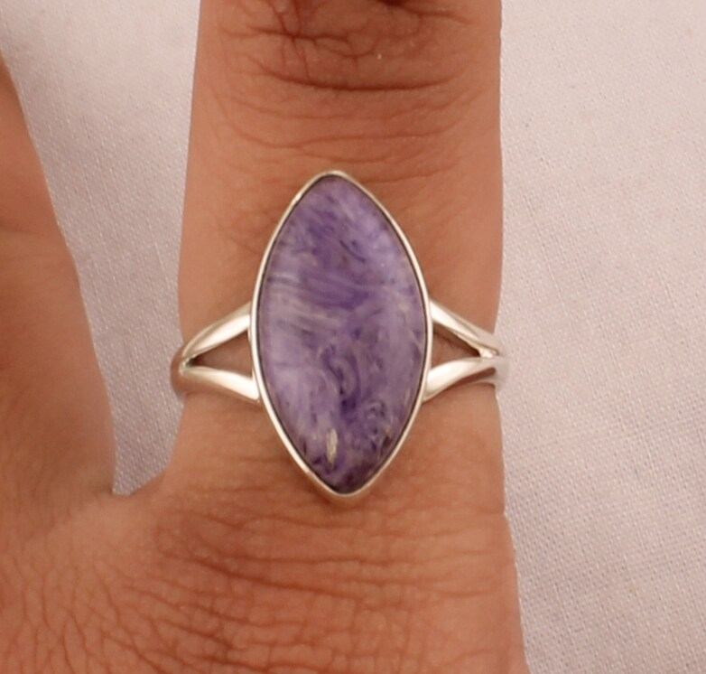 แหวนเงินแท้ 925 ดีไซน์เนอร์ ประดับด้วยพลอยชารอยต์ทรงมาร์ควิส แหวนทำมือสำหรับผู้หญิง เหมาะสำหรับงานปาร์ตี้และวันครบรอบ