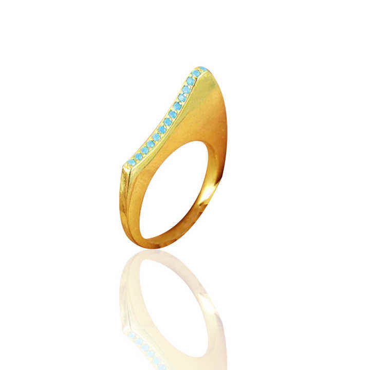 แหวนพลอยเทอร์ควอยซ์สีทองสำหรับนักออกแบบสีเงินสเตอร์ลิง925ทึบ