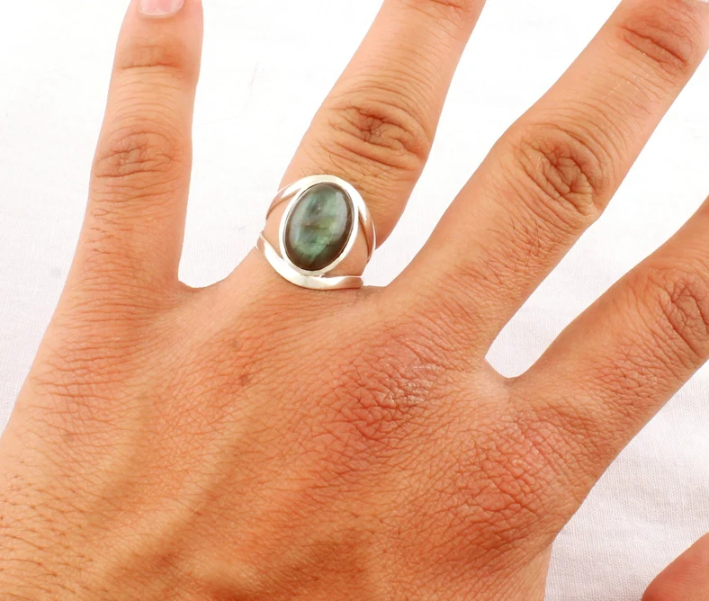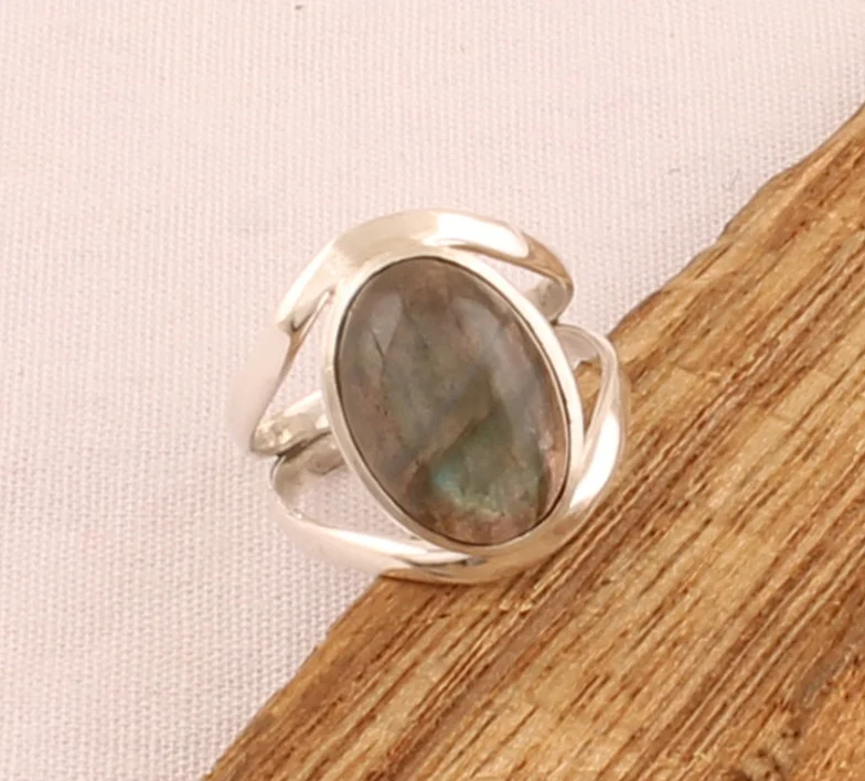 Solid 925 Sterling Silver Double Band Ring Handmade Oval Gemstone Natural Labradorite Men's/Women's Fancy Two Layers Band Ring