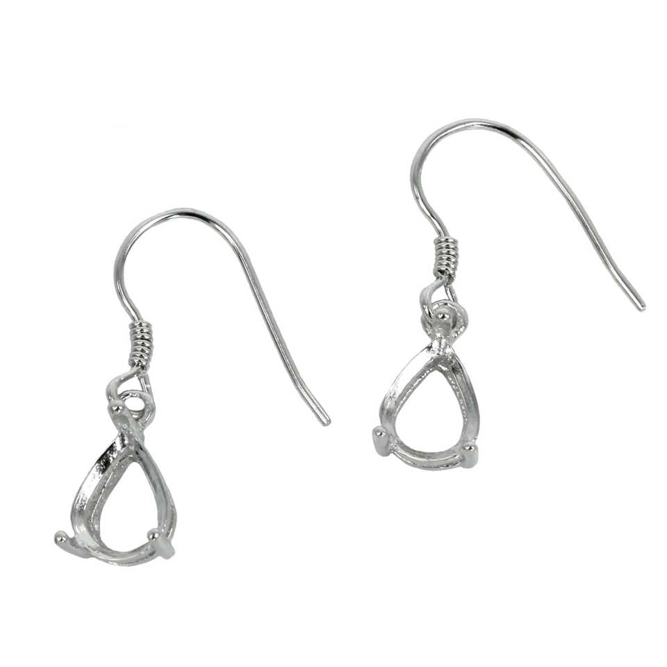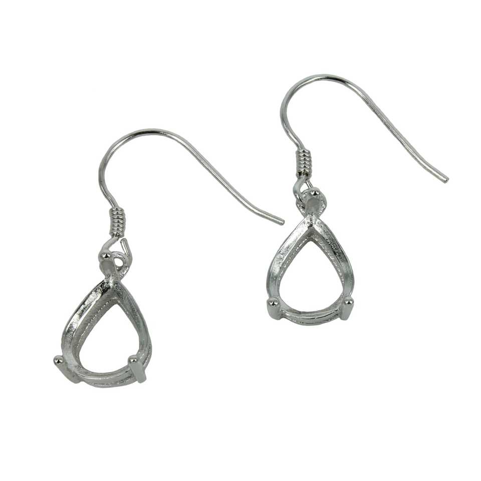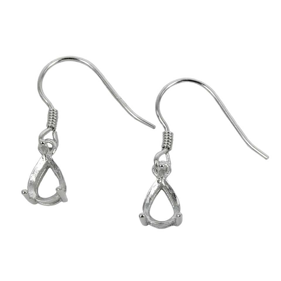 925แข็งแข็งหูลวดเงินสเตอริงทรงลูกแพร์ที่ตั้งตะกร้าเปล่าแบบง่ามขนาด5x7มม.-ต่างหู9X11มม. สำหรับเครื่องประดับที่ประณีต