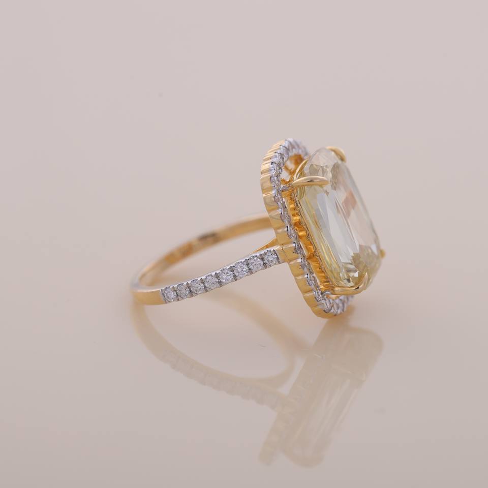 แหวนเงินแท้ 925 ประดับเพชรเหลืองทรงเหลี่ยมมรกต พร้อมเพชรรอบด้าน งานจิวเวลรี่ชั้นดี