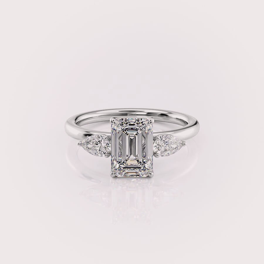 แหวนหมั้นเพชรทรงเหลี่ยมมรกตเงินแท้ 925 ประดับเพชรเลี้ยงในห้องปฏิบัติการสามเม็ด รับรองโดย IGI ชุบโรเดียม หรูหราสำหรับผู้หญิง