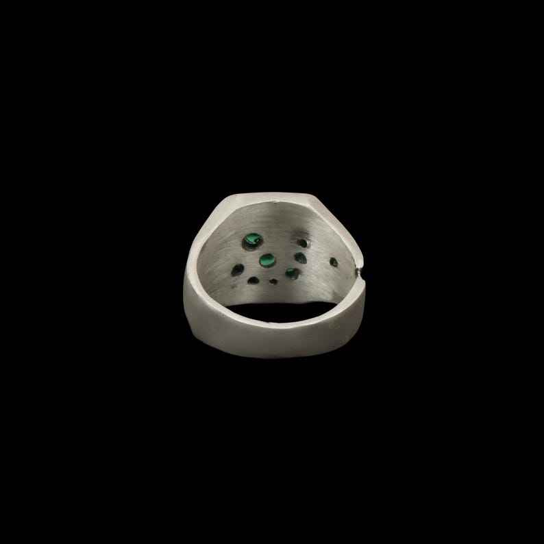 แหวนเงินสเตอร์ลิง925ทึบสไตล์อาร์ตเดคโคทำด้วยมือเครื่องประดับงานหมั้นของผู้ชายด้วยอัญมณีสีเขียวมรกต