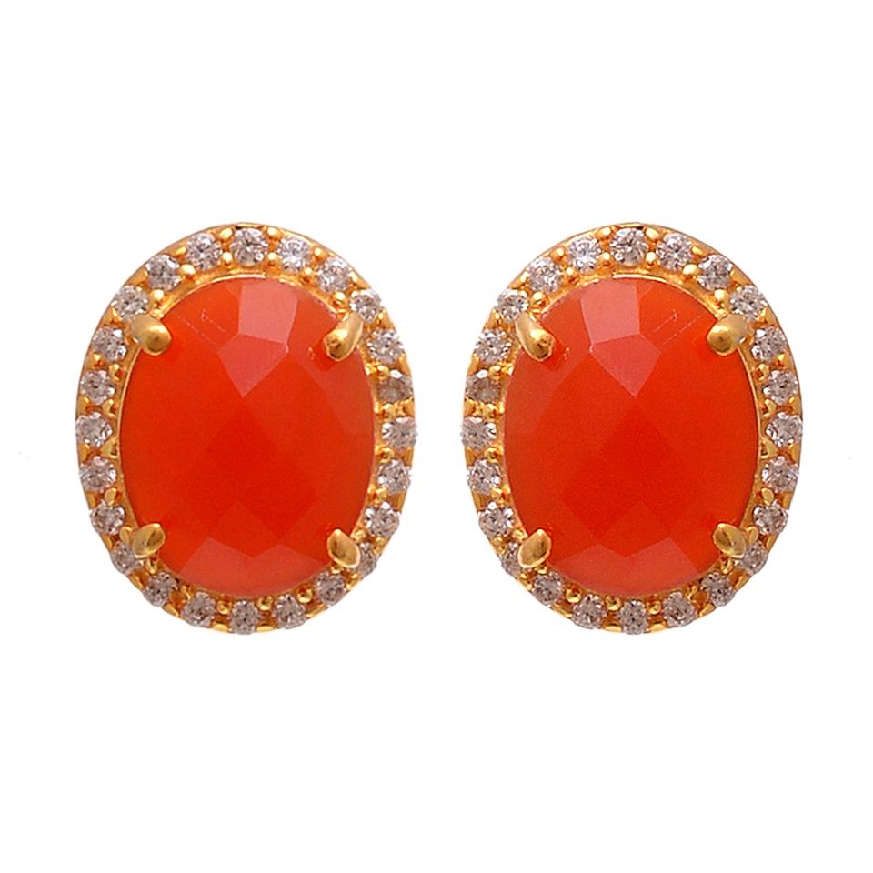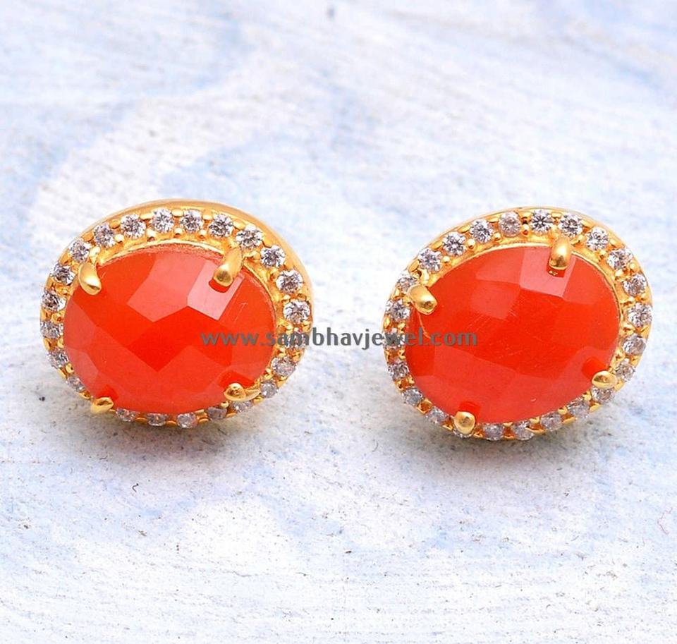 Solid 925 Sterling Silver Gold Plated Handmade Classic Vintage Natural Carnelian Prong Antique Stud Earrings Engagement Gift