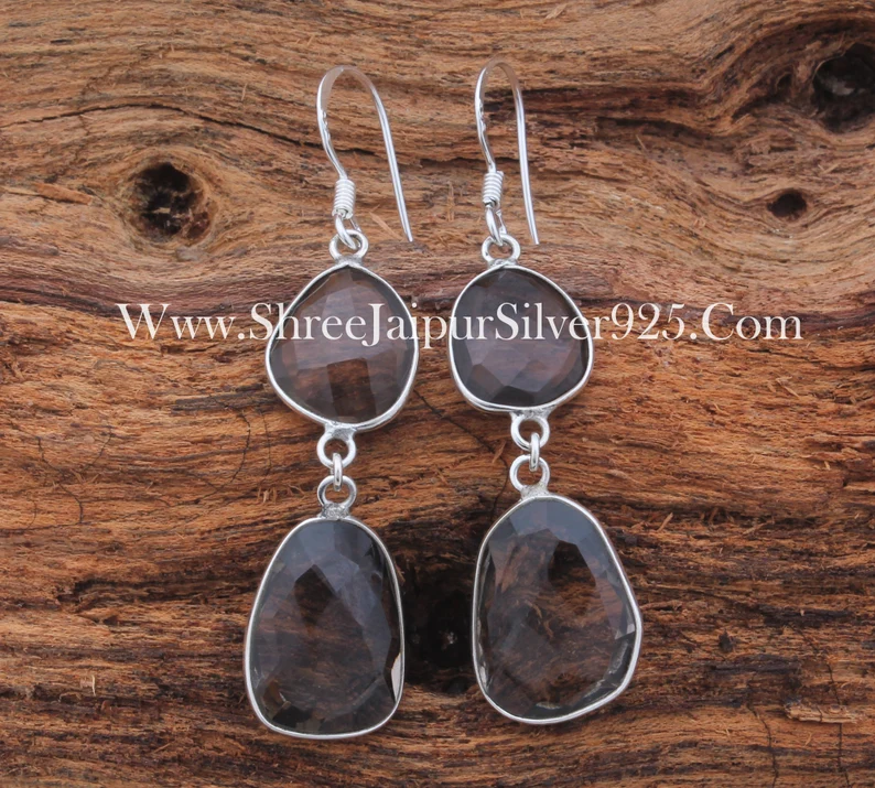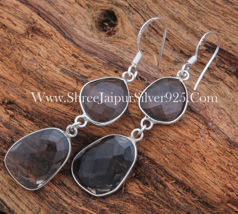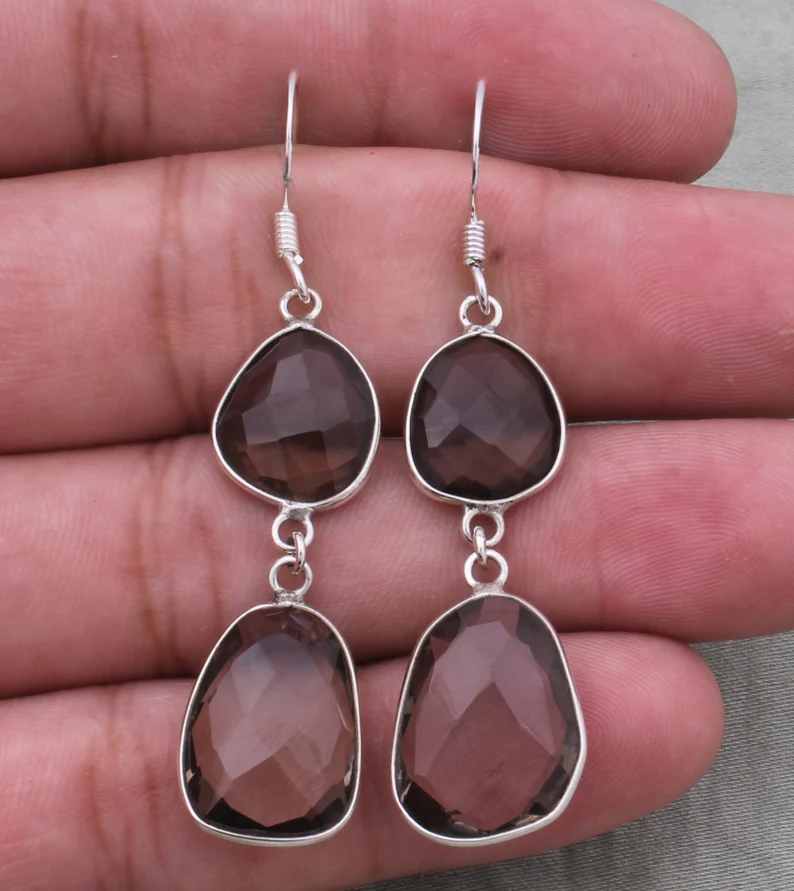 ชุดฝาปิดเพชรพลอยเหลี่ยมเพชรพลอยสำหรับงานเลี้ยงและงานแต่งงานทำด้วยมือต่างหูห้อยทำด้วยมือทำจากเงินสเตอร์ลิง925แข็ง