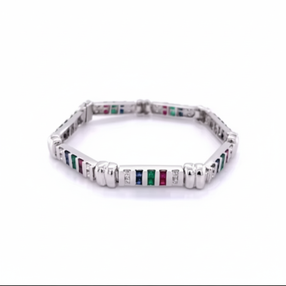สร้อยข้อมือเงินหลายเม็ด925แข็งเพชรรวม12กะรัตพร้อมมรกตและแซฟไฟร์ของขวัญสำหรับผู้หญิง