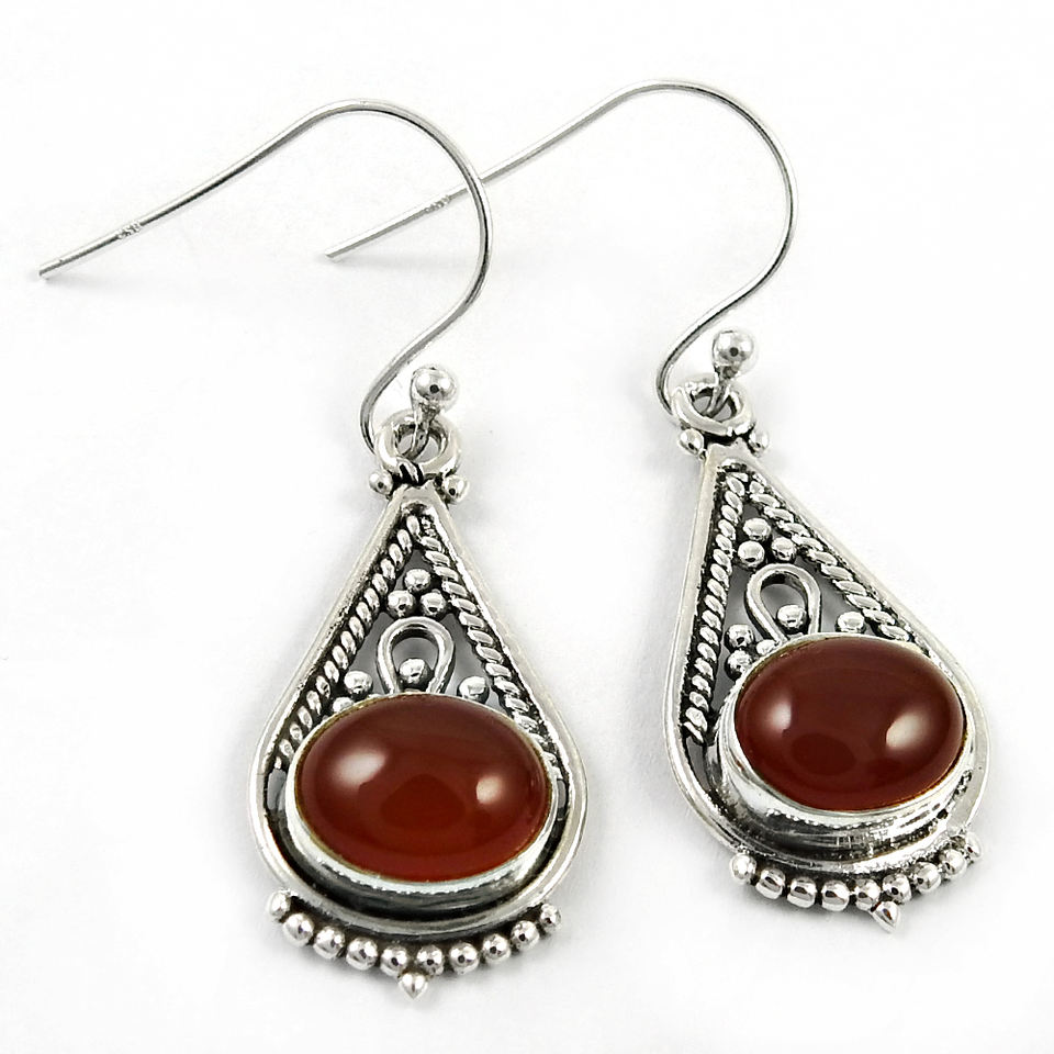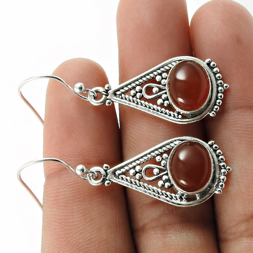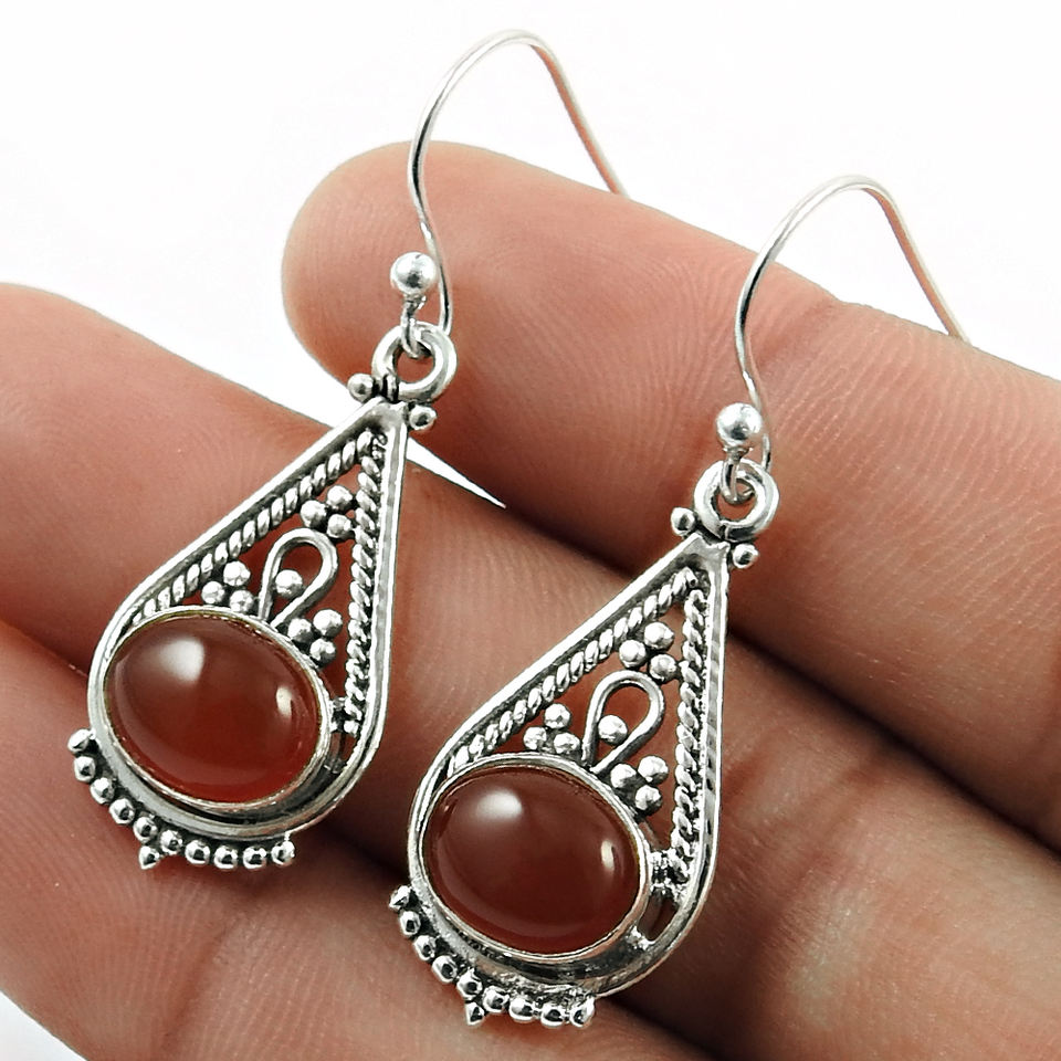 925สเตอร์ลิงเงินธรรมชาติคาร์เนเลียนอัญมณีช่างฝีมือดูห้อยต่างหูผู้หญิงเครื่องประดับทำด้วยมือขายส่ง