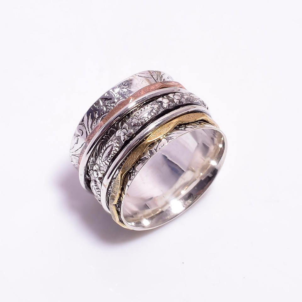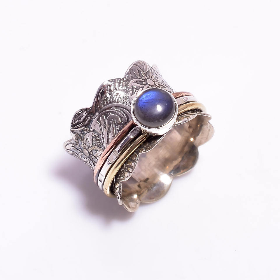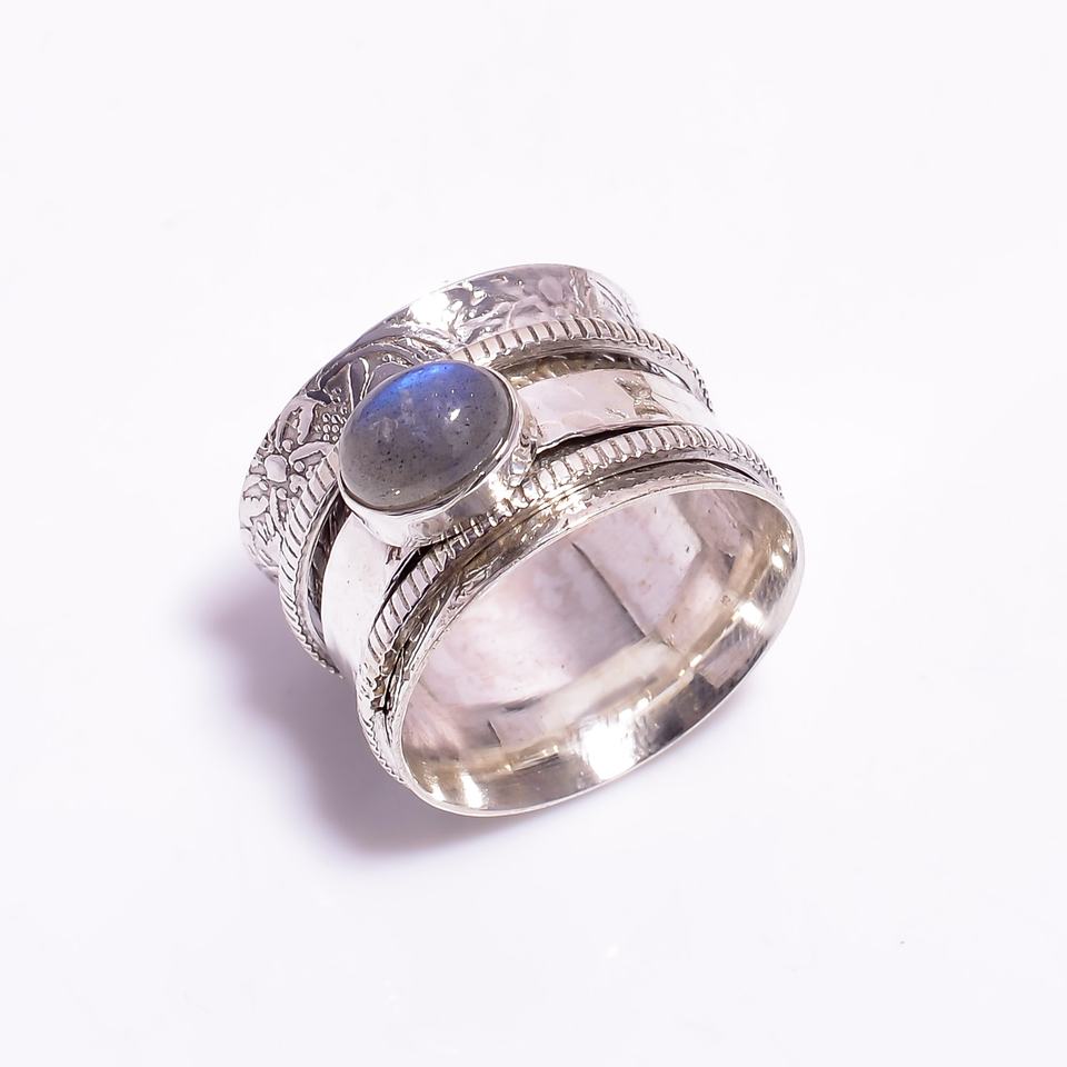 แหวนสปินเนอร์สำหรับผู้หญิงแหวนแต่งงานหินลาบราดอไรต์ธรรมชาติสีเงินสเตอร์ลิง925แข็งสไตล์โบฮีเมียน