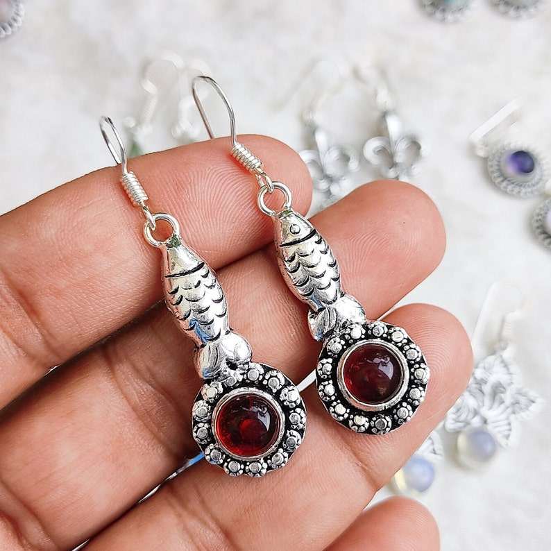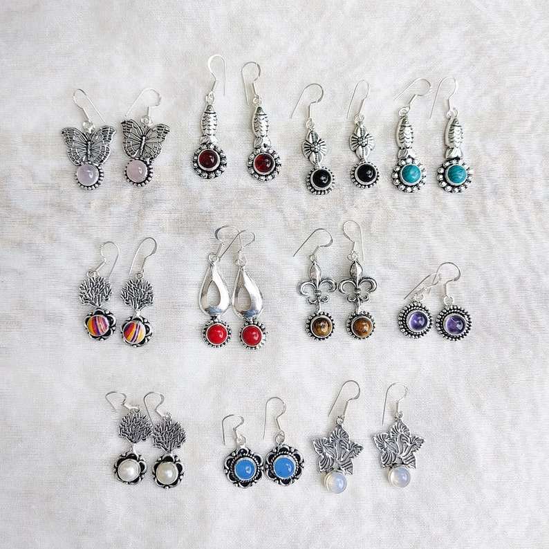ต่างหู925เงินสเตอร์ลิงแบบห้อยอัญมณีหลายเม็ดแบบธรรมชาติดีไซน์แบบบาฮามาส