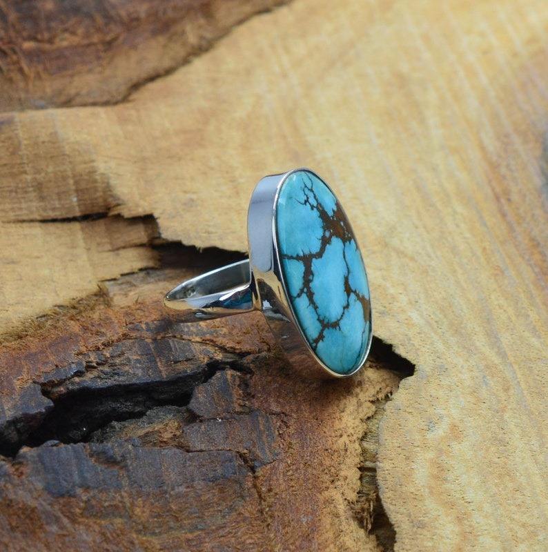 แหวนเงินแท้925สีเทอร์ควอยซ์ธรรมชาติทำด้วยมือแหวนเงินแท้เครื่องประดับแหวนสัญญาของขวัญแต่งงานแหวนเครื่องประดับ