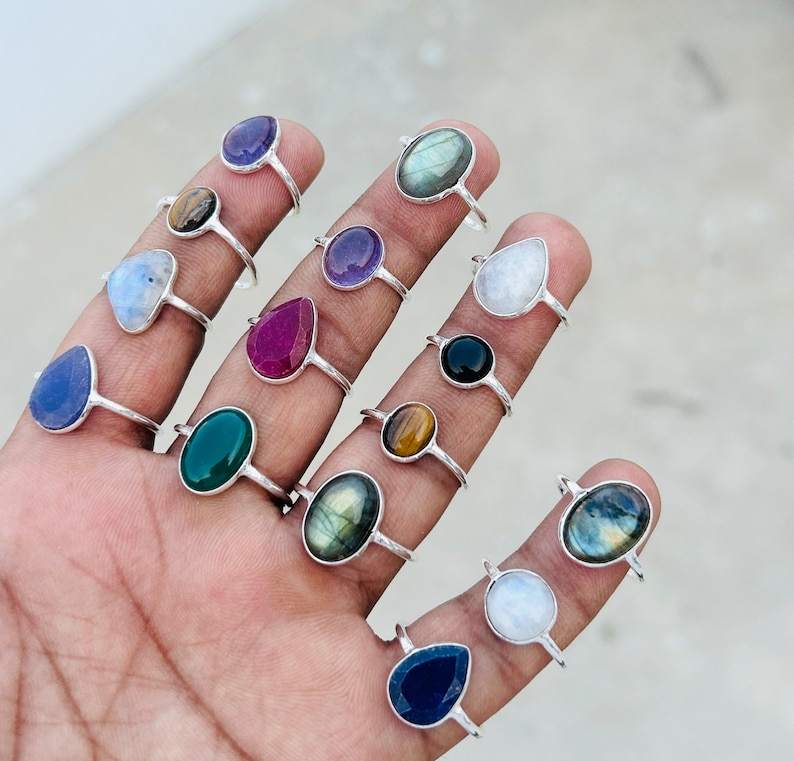 925แข็งชุบเงินสเตอริงอัญมณีธรรมชาติขายส่งจำนวนมากแหวนทรงรีตั้งขอบค็อกเทลเครื่องประดับแฟชั่นทำด้วยมือ