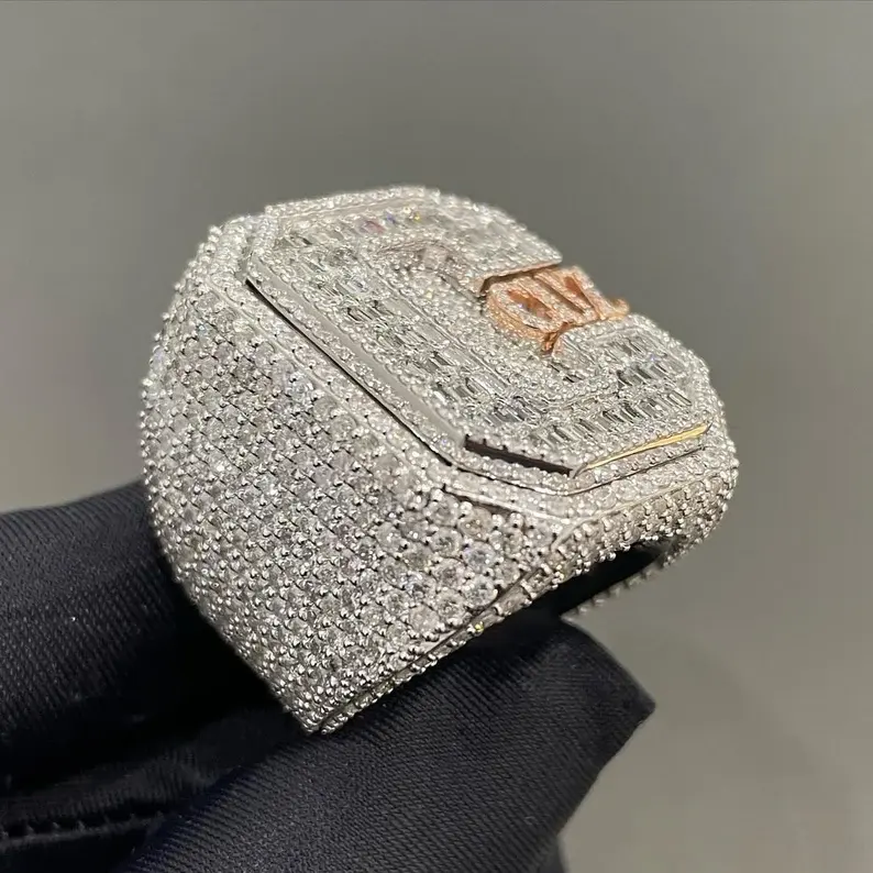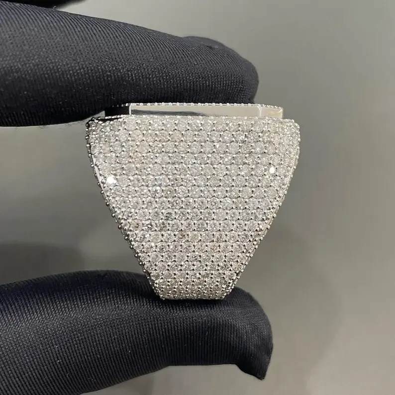 แหวนชุบเงินสเตอริง925แข็งแหวนเพชรมอสซาไนต์น้ำแข็งล้วนสำหรับเครื่องประดับแฟชั่นของผู้ชาย
