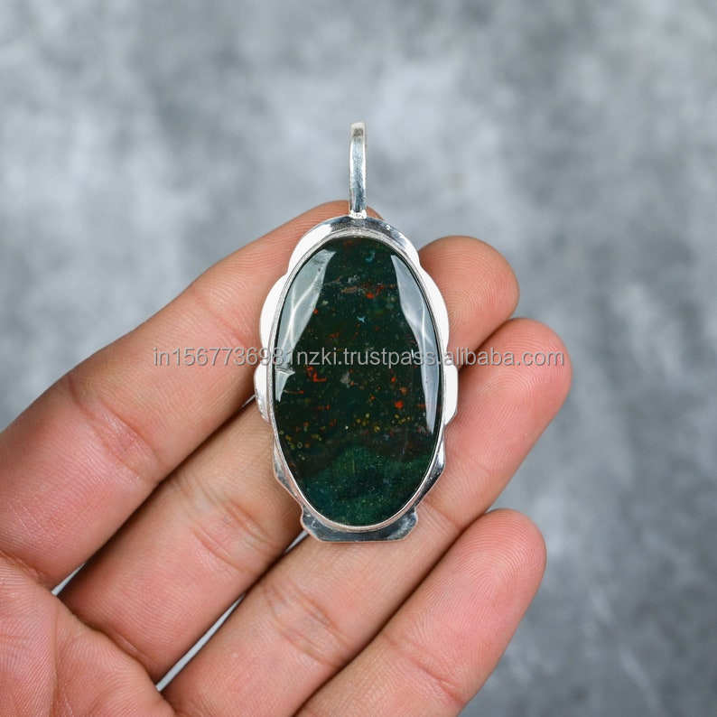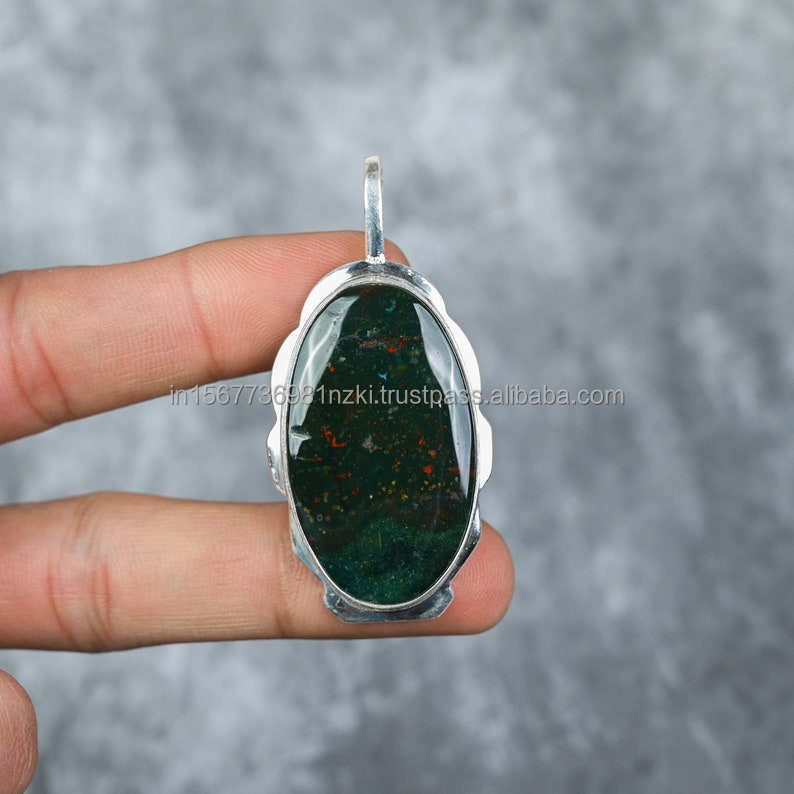 จี้เงินแท้ 925 ชุบทองคำขาว งานแฮนด์เมด สไตล์โบฮีเมียน ประดับพลอยบลัดสโตน สำหรับสร้อยคอหมั้นผู้หญิง