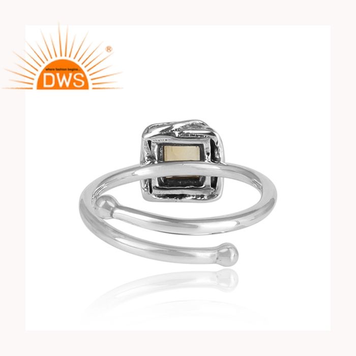แข็ง925เงินสเตอร์ลิงแหวนซ้อนกันผู้ค้าส่งสแควร์ตัดซิทรินพลอยผู้หญิงแหวนผู้ผลิต