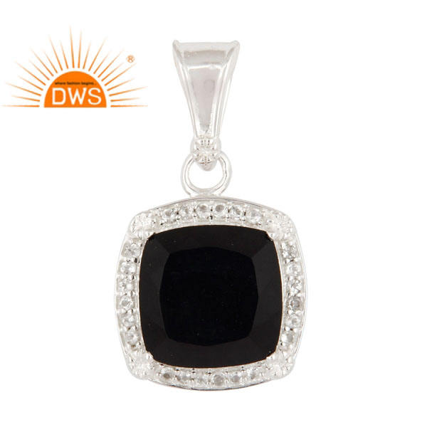 ของแข็ง925เงินสเตอร์ลิงผู้หญิงจี้เครื่องประดับผู้ค้าส่งเบาะสีดำนิลพลอยจี้สีขาวบุษราคัมเครื่องประดับจัดงานแต่งงาน