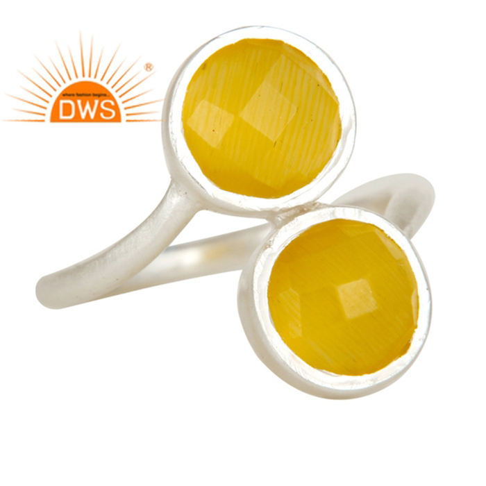 ของแข็ง925เงินสเตอร์ลิงผู้ผลิตเครื่องประดับแหวนปรับธรรมชาติสีเหลืองมูนสโตนพลอยแหวนเงินเครื่องประดับผู้ค้าส่ง