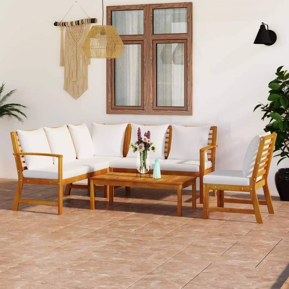 ชั้นวางหนังสือไม้อะคาเซียสีครีม ชุดสวน 5 ชิ้น