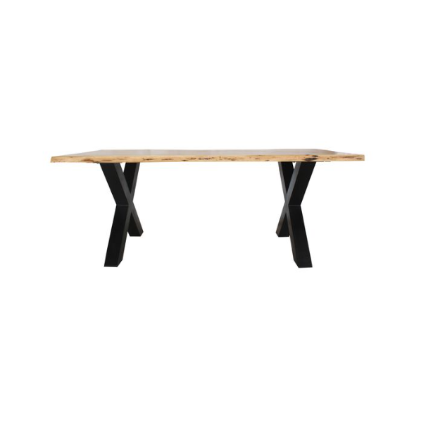 Solid Acacia Wood Dining Table With Live Edge Slab Top And Sturdy Metal X Legs In Industrial Style Measuring 200 Cm