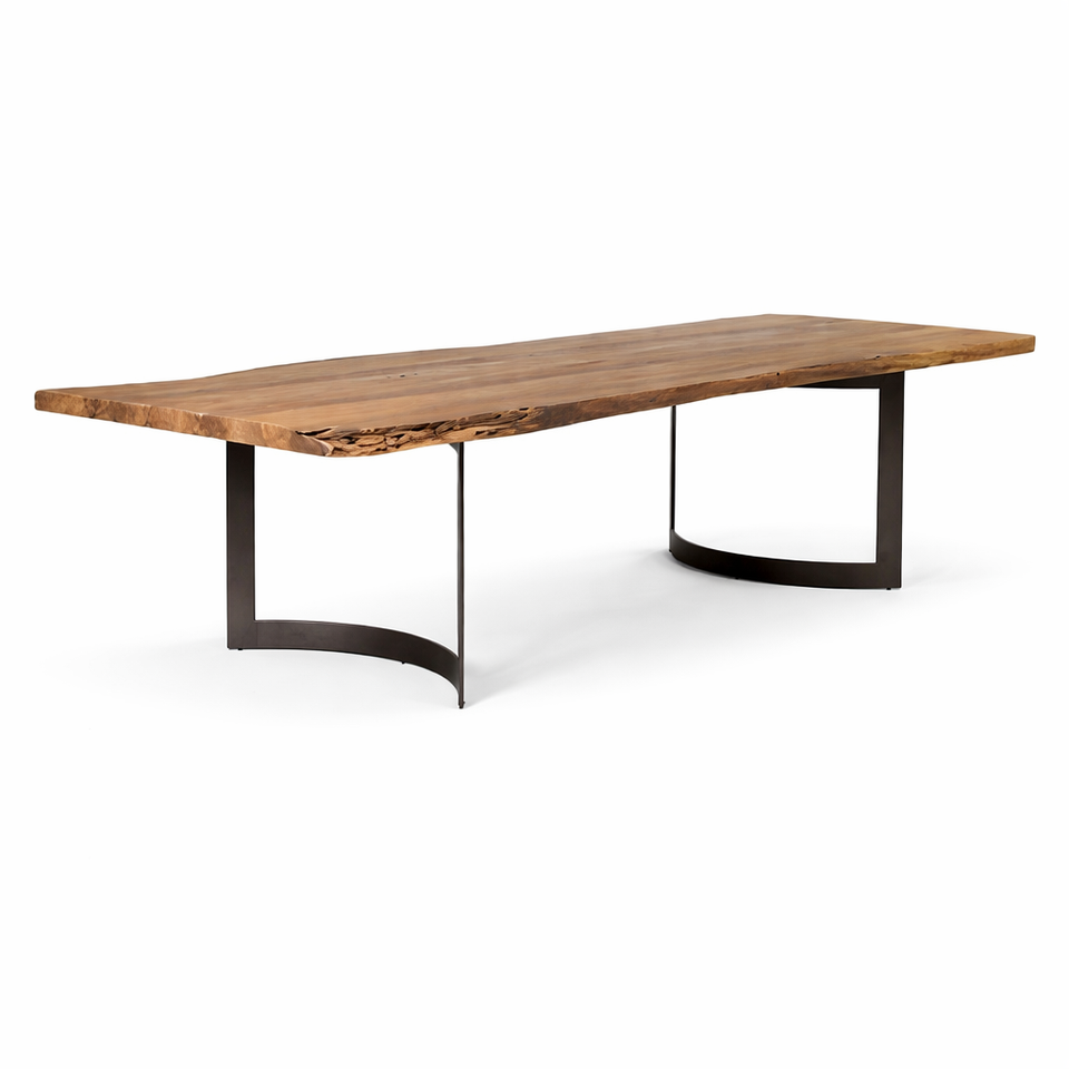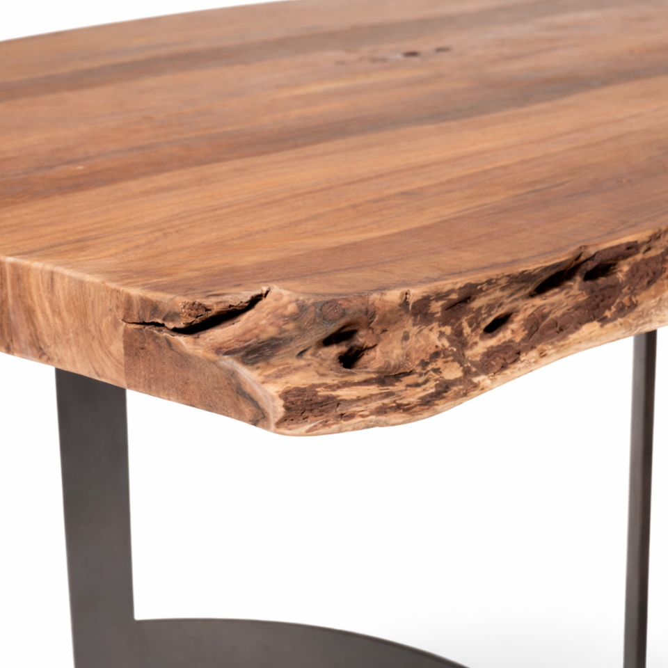 โต๊ะอาหารไม้สักแท้ทำมือ | เฟอร์นิเจอร์ห้องรับประทานอาหารสไตล์อินดัสเทรียลโมเดิร์น | โต๊ะไม้ขอบธรรมชาติ สำหรับใช้ในบ้าน ร้านอาหาร แบบธรรมชาติ