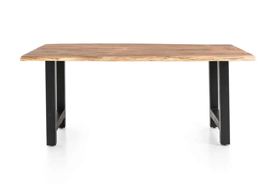 โต๊ะอาหารไม้สักอะคาเซียแท้สไตล์โมเดิร์นกลางศตวรรษ พร้อมขอบไม้ธรรมชาติโค้งมนและขาเหล็กพับได้