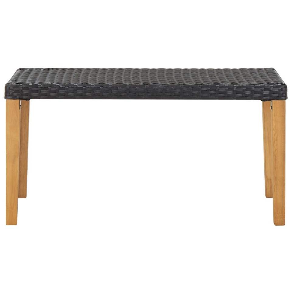 ม้านั่งในสวนทำจากไม้อะคาเซียเนื้อแข็งและหวายโพลีสีดำ ม้านั่งกลางแจ้งขนาดกลาง