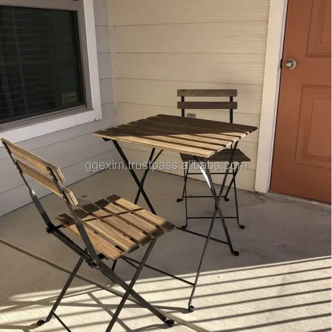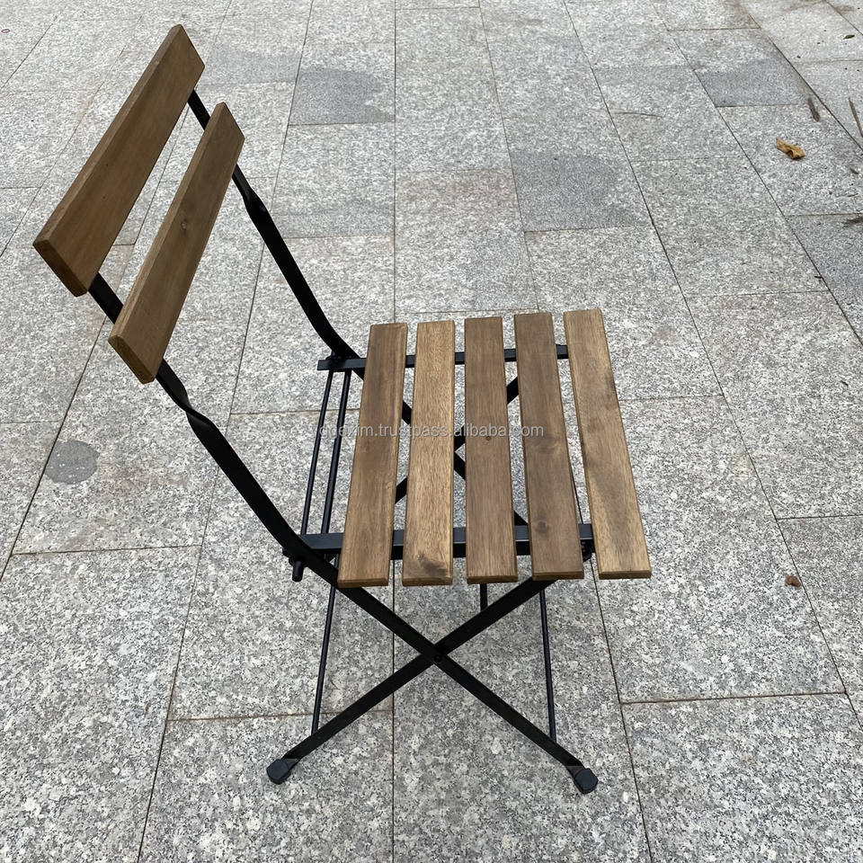 ชุดเฟอร์นิเจอร์กลางแจ้งสำหรับร้านอาหารและคาเฟ่ไม้อะคาเซียแข็งพับได้เก้าอี้รับประทานอาหารสไตล์โมเดิร์นสำหรับร้านอาหารและคาเฟ่