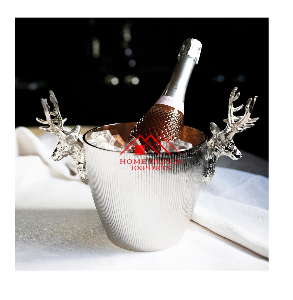 ถังแช่ไวน์อะลูมิเนียมแข็งพร้อมหูจับรูปกวางเรนเดียร์สำหรับตกแต่งงานปาร์ตี้