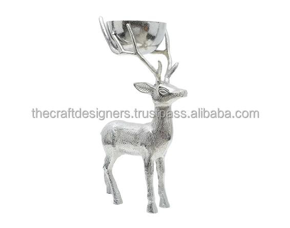 รูปปั้นกวางโลหะทำจากอะลูมิเนียมแข็งตกแต่งโต๊ะรูปกวางน่ารักและวัตถุตกแต่ง