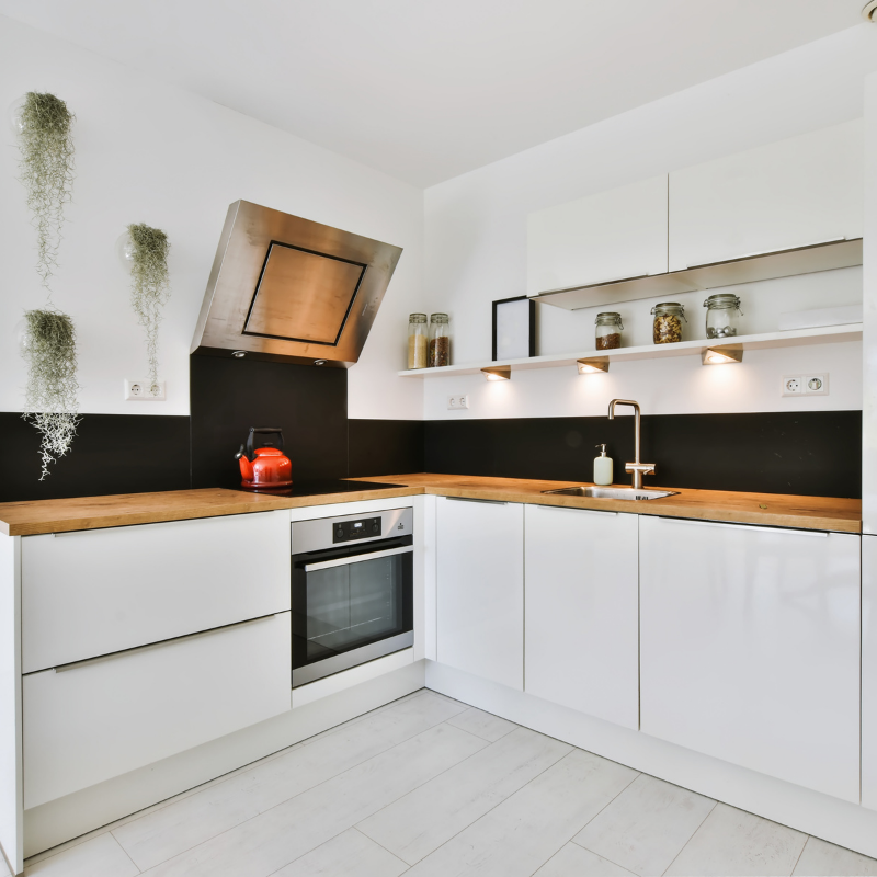 Solid Ash Wood and MDF Luxury Kitchen Cabinets Light Brown for Apartment Use