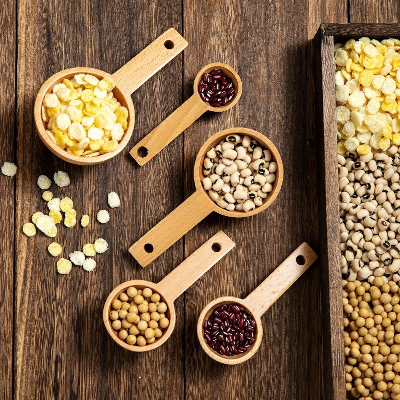 ชุดช้อนตวงทำจากไม้บีชแข็งทำจากวัสดุ PC ที่ตักผงกาแฟและถ้วย