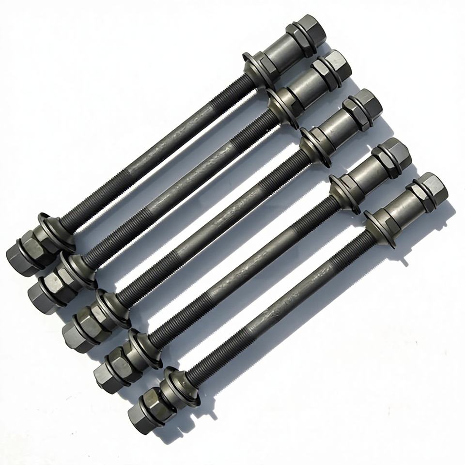 แกนจักรยานสีเทาแข็งแรงทนทาน 190 มม. สำหรับล้อหลัง ทำจากเหล็กกล้าคาร์บอน แบบยึดด้วยสลักเกลียว สำหรับจักรยานเสือภูเขา
