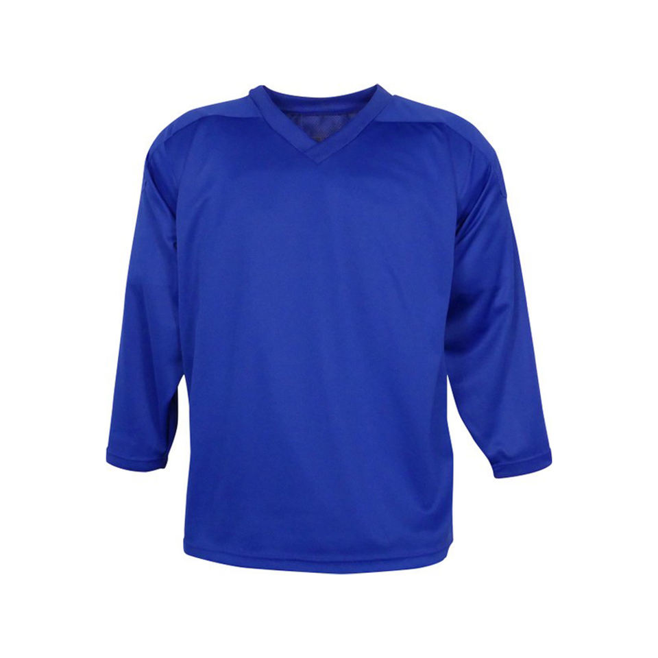 เครื่องแบบผู้ใหญ่สีฟ้าทึบปรับแต่งได้ชุดฮ็อกกี้น้ำแข็งว่างเปล่าเสื้อพิมพ์ลายระเหิดสำหรับสนามฮอกกี้