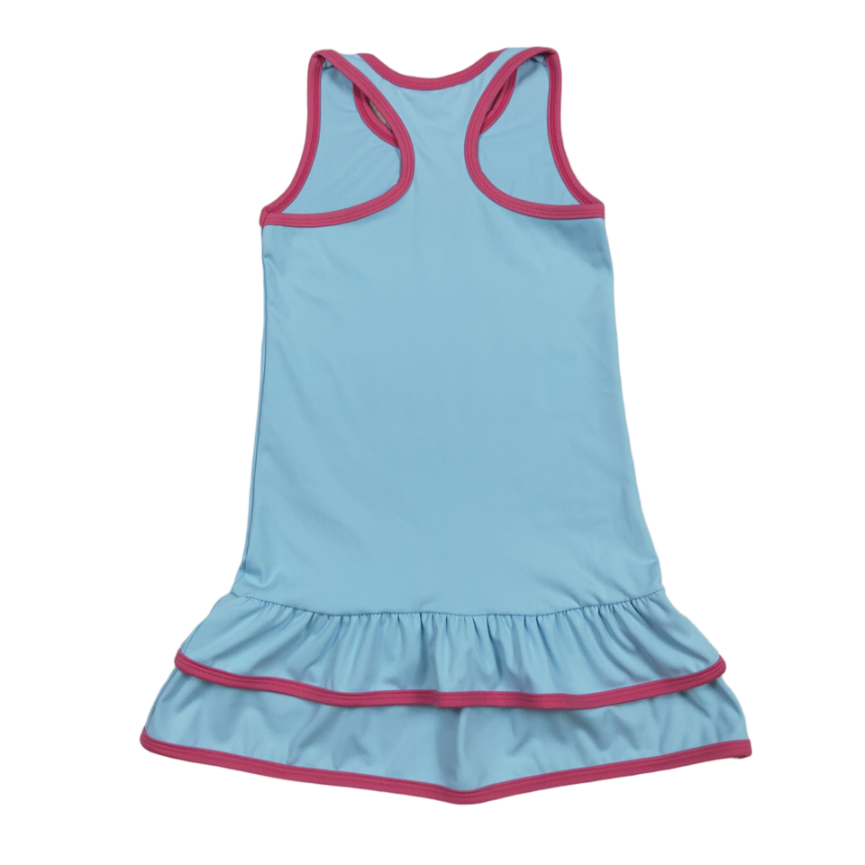 ชุดกีฬาโยคะสีฟ้าทึบสำหรับเด็กผู้หญิงชุดเสื้อผ้าบูติกแฟชั่นสำหรับเด็กวัยหัดเดินชุดสำหรับสวมใส่ในฤดูร้อน
