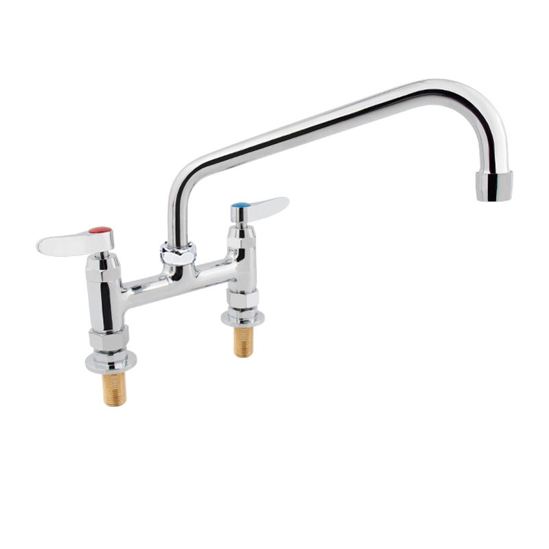ก๊อกน้ำทองเหลืองแท้ขนาด 10 นิ้ว แบบหมุนได้ทันสมัย สำหรับครัวเชิงพาณิชย์ แบบติดตั้งบนเคาน์เตอร์ โครเมียมขัดเงา ก๊อกน้ำครัวแบบเปิด-ปิดสองมือจับ