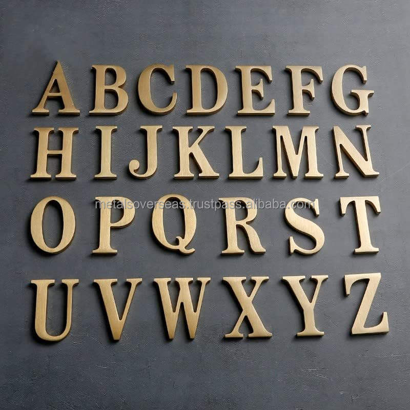ตัวอักษรทองเหลืองแข็งตกแต่งผนังตัวอักษรภาษาอังกฤษทันสมัยทนทานปรับแต่งได้