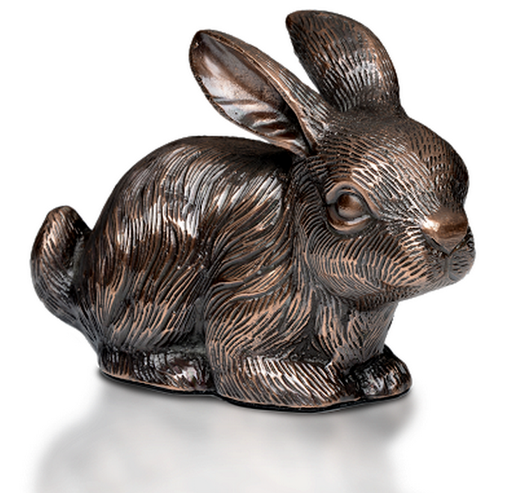 โกศใส่เถ้ากระดูกรูปกระต่ายทำจากทองเหลืองและอลูมิเนียมพร้อมผิวสีบรอนซ์ที่เป็นมิตรกับงบประมาณ